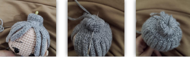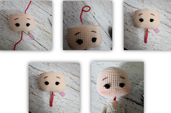 🧵 Cierra la cabeza con la aguja pasando el hilo por los puntos restantes