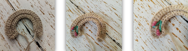 (15 cad, empezar en la 3ª cad desde el ganchillo; 13 mpa, unir con FLO y 3 pd en la base) * 1