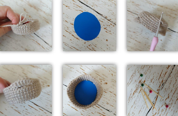 ✂️ Cortar un círculo de fieltro o plástico rígido del tamaño de la base de la cesta y colocarlo en su interior