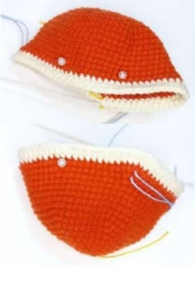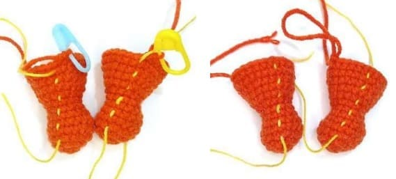 Rellenar solo la parte de abajo. Doblar por la mitad y tejer 5 pb para ambas paredes. Fijar el hilo y cortar.