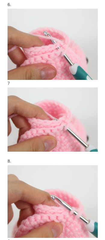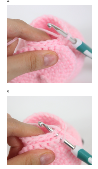 Cerrar y coser en las vueltas 34–35, separadas por 4 puntos.
