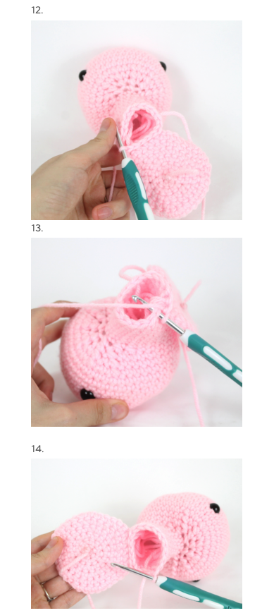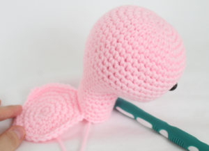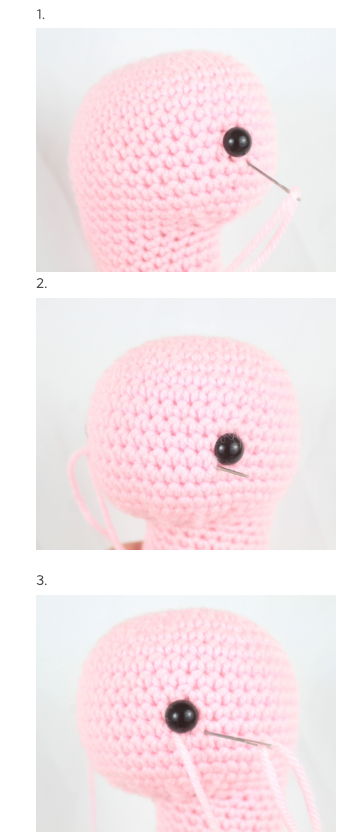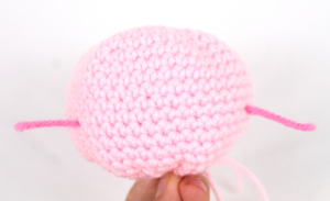 Cerrar dejando hilo largo, colocar y coser al cuerpo.