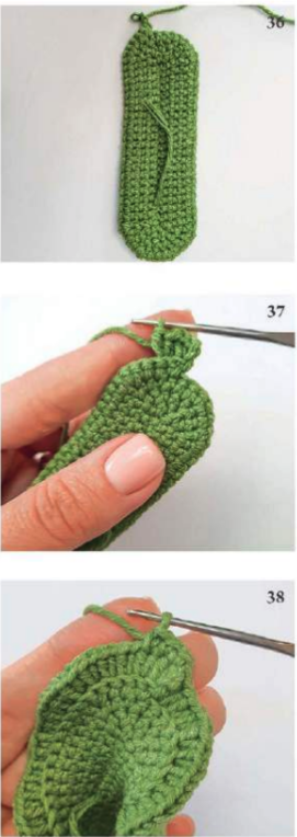 📌 6. Con hilo verde oscuro, bordar detalles en la hoja para darle más realismo (ver foto 47).
