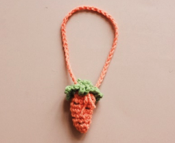 Haz 45 cadenas con el hilo C para hacer la correa. Conecta la correa a la bolsa, usa el hilo marrón para bordar en la bolsa para que parezca más una zanahoria. Toma un trozo de hilo B a través de la octava ronda y luego aprieta la boca de la bolsa, haz un lazo.