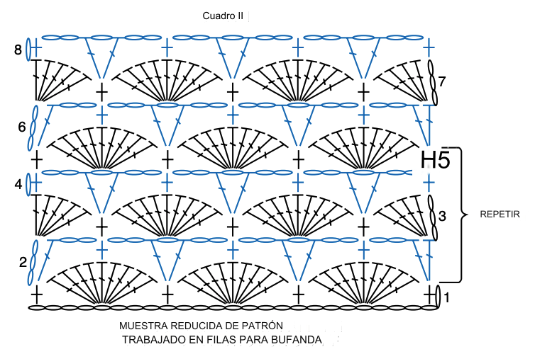 Nota: 2 cad al inicio de la hilera cuentan como medio punto alto.