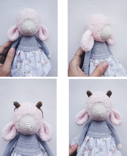 Luego, coser los cuernos en la parte superior de la cabeza.