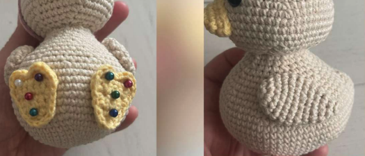 Dejar una segunda hebra para atar la pieza terminada en el patito.
