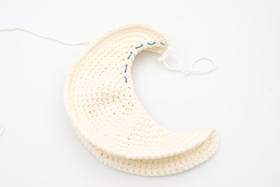 Doblar por la mitad con el revés hacia adentro y coser los bordes mientras se rellena.
