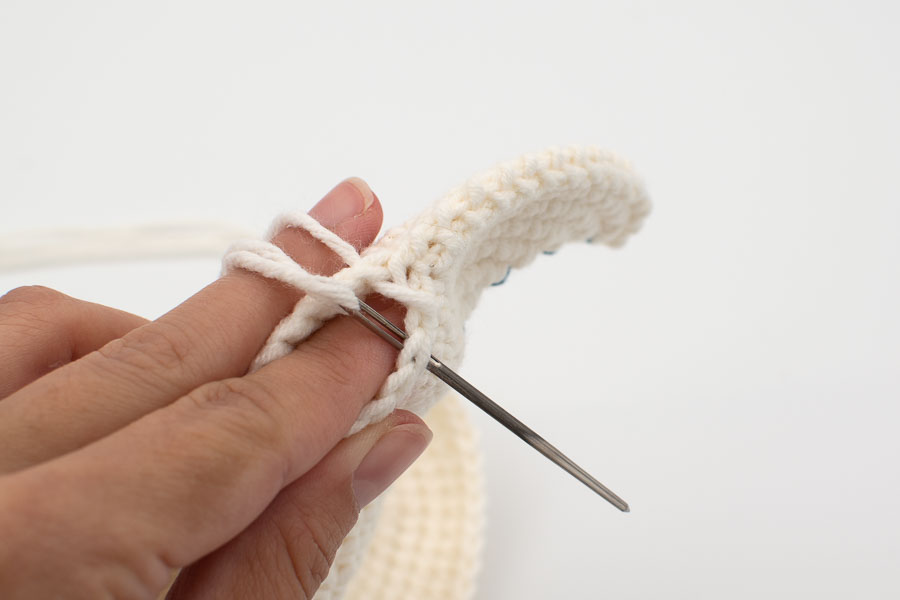 - Coser las orejas a la cabeza.
