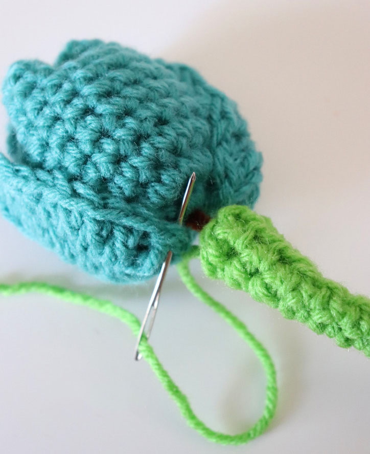 ¡Cose la parte superior del tallo a la parte inferior del tulipán con tu otro extremo suelto!