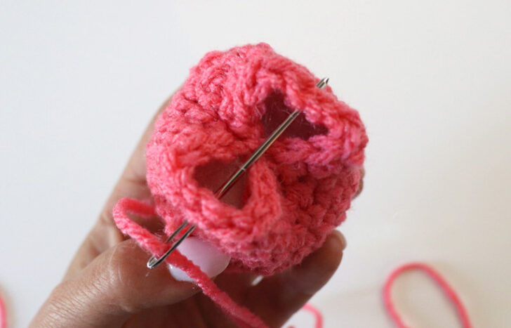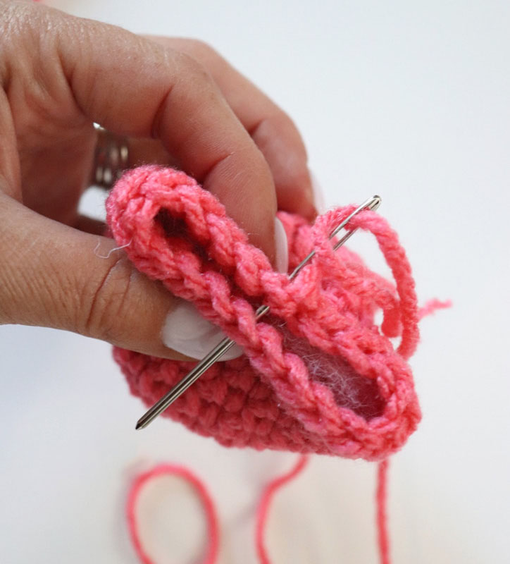 Pellizca la parte superior de la flor y ciérrala, y pasa la aguja lanera por el medio.