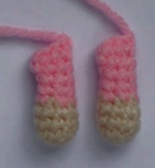 6️⃣ Unir la primera pierna tejiendo 4 pb, luego 9 pb, unir la segunda pierna con 4 pb, tejer 7 pb (24 pb)