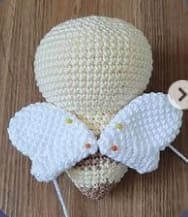 Las antenas se deben coser en la cabeza de tu amigurumi, recordando siempre tomar como referencia el centro de los ojos.