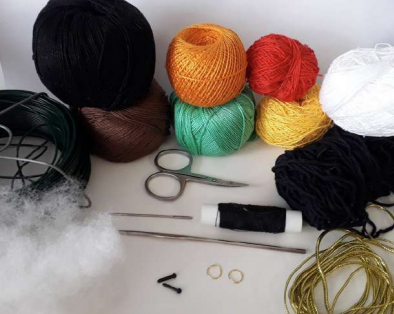 - Estambre Iris (282m/50g) o Yarnart Violet, Anna16, etc. (colores: café, amarillo, rojo, verde, naranja, negro, blanco)