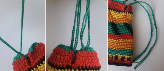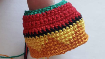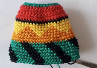 Para la falda necesitamos estambre: rojo (R), verde (G), amarillo (Y), naranja (O), negro (B)