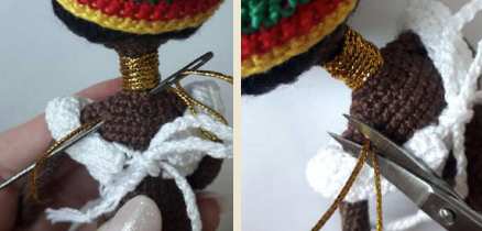 Enrolla el hilo dorado varias veces alrededor del cuello