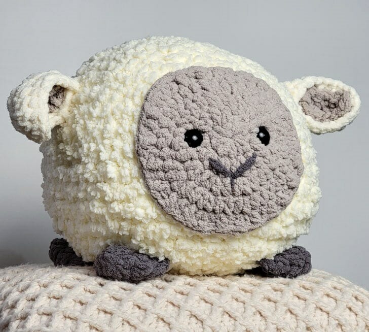 🌞 La ovejita mide 10″ de ancho/alto sin contar las orejas y los pies.