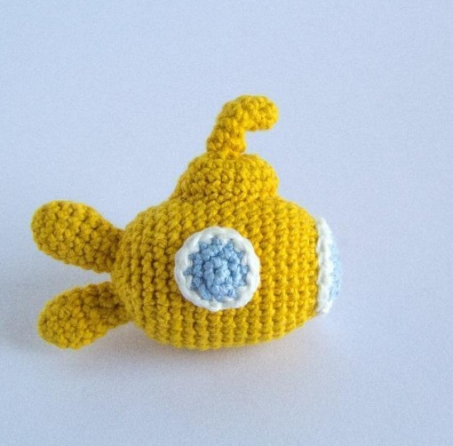 Termina y deja una hebra larga para coser, si lo deseas, unidos al submarino, o bien, remata las hebras.