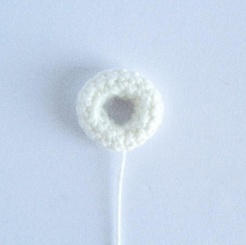 12 cad. Empieza la siguiente vuelta en la primera cad para hacer un anillo.