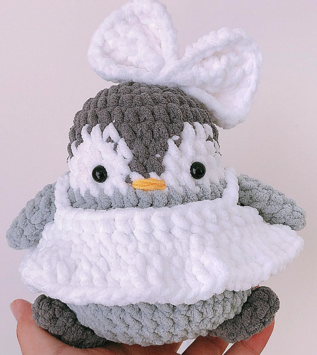 🐧 Elaborado con hilo de felpa mediano, este amigurumi ofrece una textura suave y agradable al tacto, la cual promete una experiencia táctil, placentera y segura para los más pequeños. La elección del material garantiza también la durabilidad del juguete, asegurando que resistirá el juego constante y seguirá siendo un compañero fiel durante años.