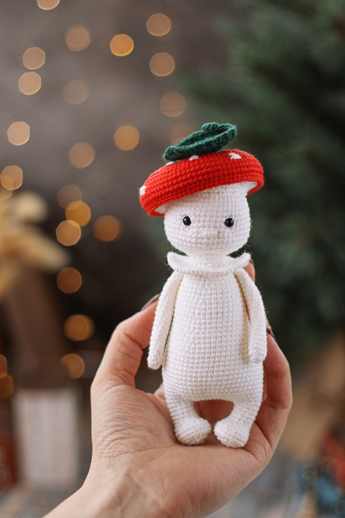 El cuerpo para el hongo porcini y para la amanita muscaria se tejen de manera diferente después de unir los brazos. Sigue las instrucciones.
