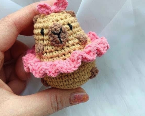 El arte del amigurumi te ofrece la libertad de hacer que cada proyecto sea totalmente tuyo. 💡 Aunque la combinación de marrón y rosa es adorable, ¿por qué no experimentar? ¿Tal vez una capibara con un tutú azul eléctrico? 💙 ¿O quizás cambiar el lazo por una pequeña corona tejida? 👑 Utiliza este patrón como base y déjate llevar por tu creatividad. Cambia los colores del hilo, los accesorios, y hasta la expresión facial (con bordado) para que tus capibaras sean absolutamente singulares. ¡Toma tu ganchillo y desata el poder de lo hecho a mano! 💪