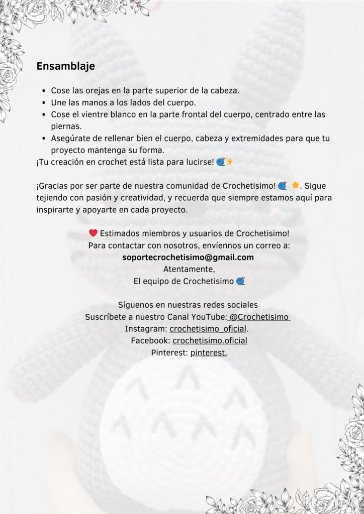 Crear este Totoro Amigurumi es una oportunidad para mostrar tu creatividad y confeccionar algo único. Puedes personalizarlo con colores y detalles que se adapten a tu estilo o al de quien lo recibirá. Cada puntada cuenta una historia, y este proyecto es el reflejo perfecto del arte del crochet y la dedicación que pones en tus creaciones.