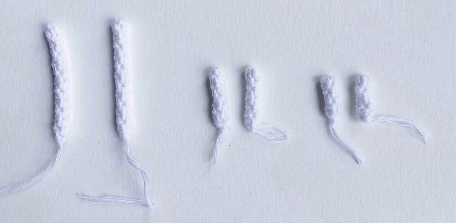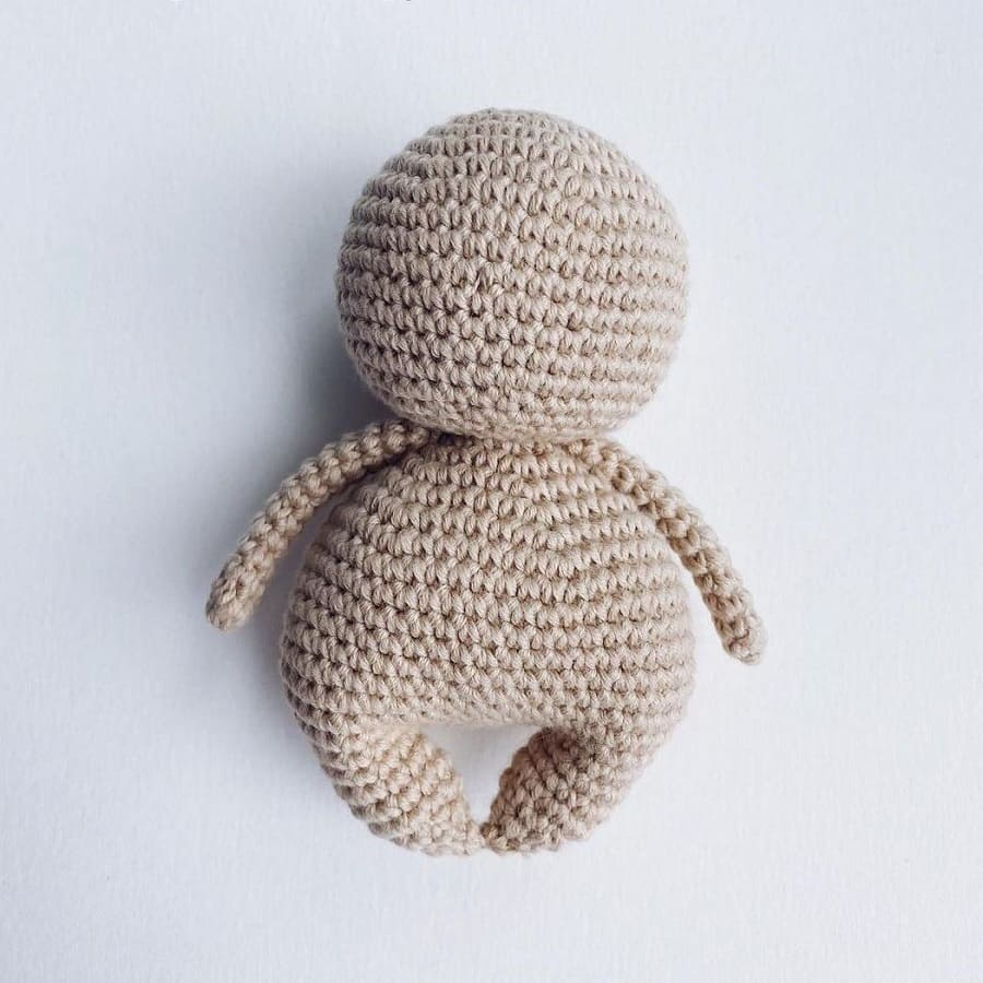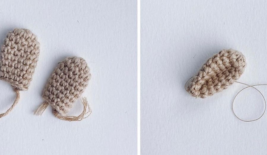 Para la segunda pierna, empezar desde el otro lado del cuerpo. Tejer la misma pierna en los 13 pb.