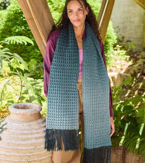 Tejida con el fabuloso punto gofre, esta bufanda ofrece una textura rica y un volumen acogedor que te mantendrá...