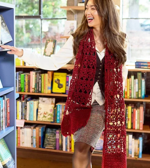 Bufanda Zafiro reside en su punto calado o de encaje, que crea un patrón aireado y delicado que recuerda...