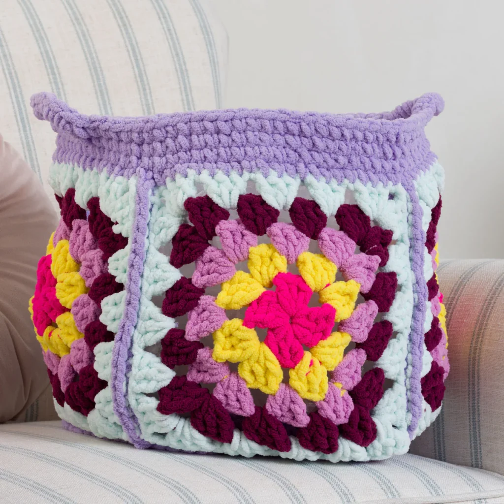 No hay nada más satisfactorio que organizar tu rincón creativo con piezas hechas por tus propias manos 🏠🌈. Esta cesta transforma el clásico granny square en un contenedor tridimensional lleno de vida y texturas suaves. Su diseño vibrante, con ese centro en fucsia y amarillo, alegra cualquier estantería y te invita a mantener todo en su sitio 🎀. La alegría de ver cómo los cuadros planos se unen para formar esta estructura robusta es increíble. ¡Es el toque «boho» que tu habitación o salón estaban pidiendo a gritos! 🧺💖