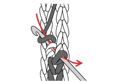 - Si sobra demasiado color al final de la vuelta, deshaz algunos puntos y afloja ligeramente la tensión para rehacerlos y llegar justo al cambio de color.