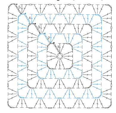 - Al final de la última vuelta, el motivo debe medir aproximadamente 26,5 cm de lado.