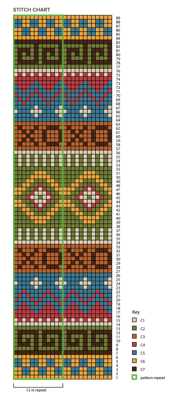 Este almohadón se trabaja en una sola pieza de forma circular. Los extremos se tejen en espiral (rondas continuas), mientras que el cuerpo se teje cerrando cada vuelta con un punto deslizado. Para el diseño de colores, utilizaremos la técnica de Tapestry Crochet, llevando los hilos por dentro del tejido.
