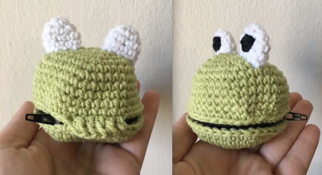 Tu bolsita ranita con cremallera está lista para usar. 🐸🧶