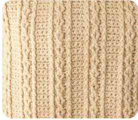 Trabaja las Filas 2–6, luego repite 3–6 hasta que la pieza mida 10 (10¼, 10½, 10¾, 11) (11¼, 11½, 11¾, 12)”.