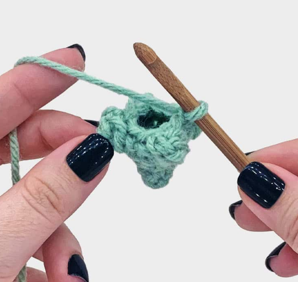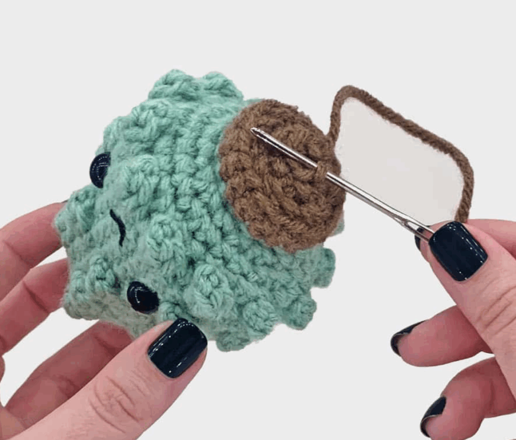 - Corta el hilo y deja una cola larga para cerrar la pieza con costura.