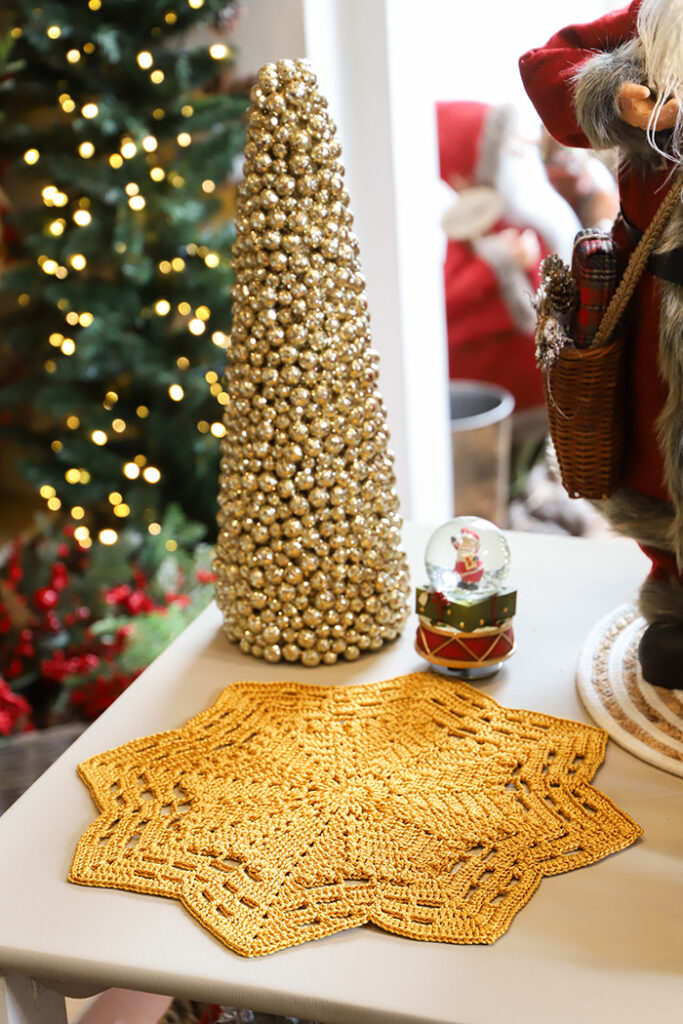 Olvídate de los adornos genéricos. Un mantel individual hecho a mano como este es una excelente opción para regalos únicos, especialmente para quienes aman recibir en casa o adoran la decoración festiva. La textura y el brillo que logras al tejerlo lo convierten en un tesoro que se valora más que cualquier artículo de tienda. ✨ Al realizar proyectos únicos como este, estás regalando una pieza de arte funcional, creada con tus propias manos. ¡Dale a tus seres queridos un glow de estilo esta Navidad!