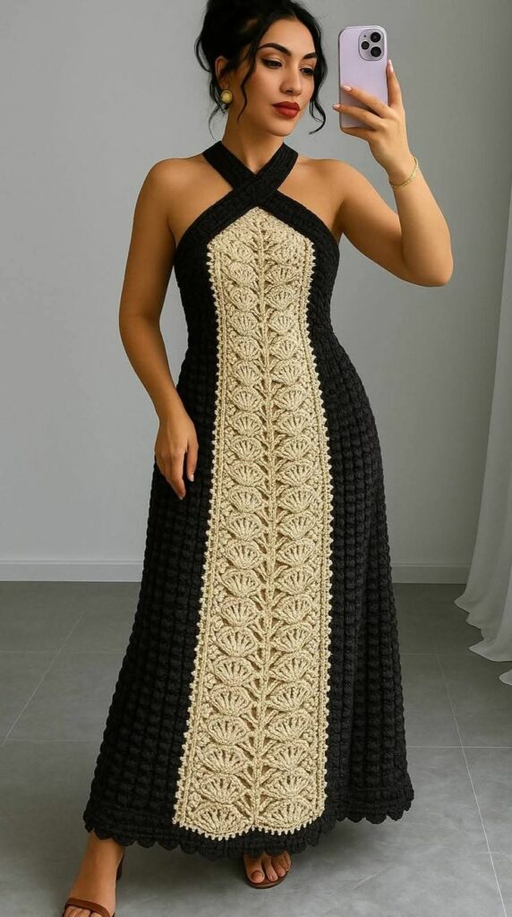 - Aprovecha el Espacio Negativo: ⬜⚫ Utiliza rejillas, calados o puntos de red para crear «agujeros» o áreas transparentes en el diseño, jugando con la piel o la prenda que llevas debajo.