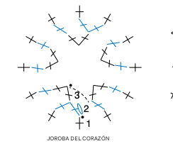 Rellenar ligeramente el corazón, dejando espacio para trabajar el segundo lóbulo. Dejar los puntos restantes sin trabajar.
