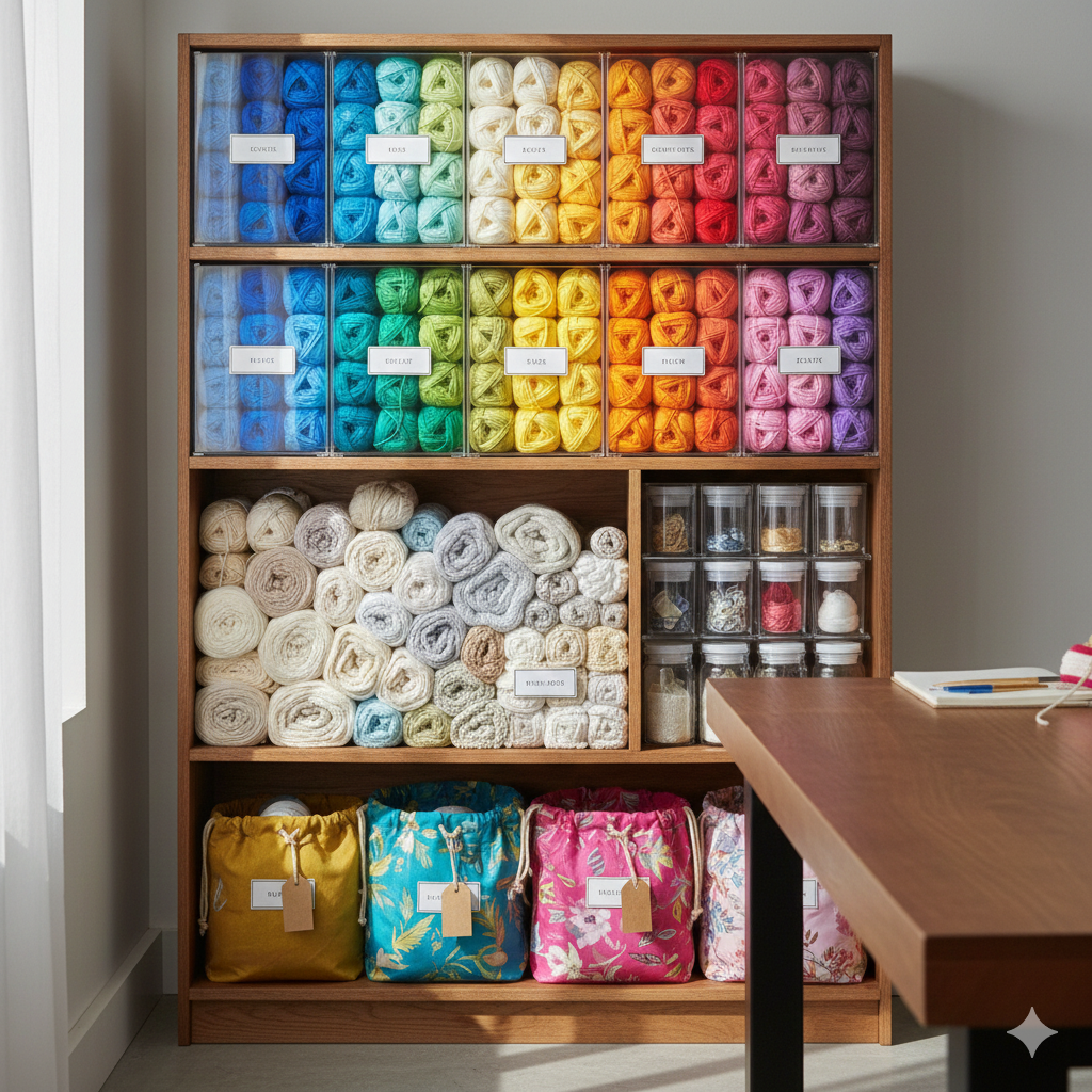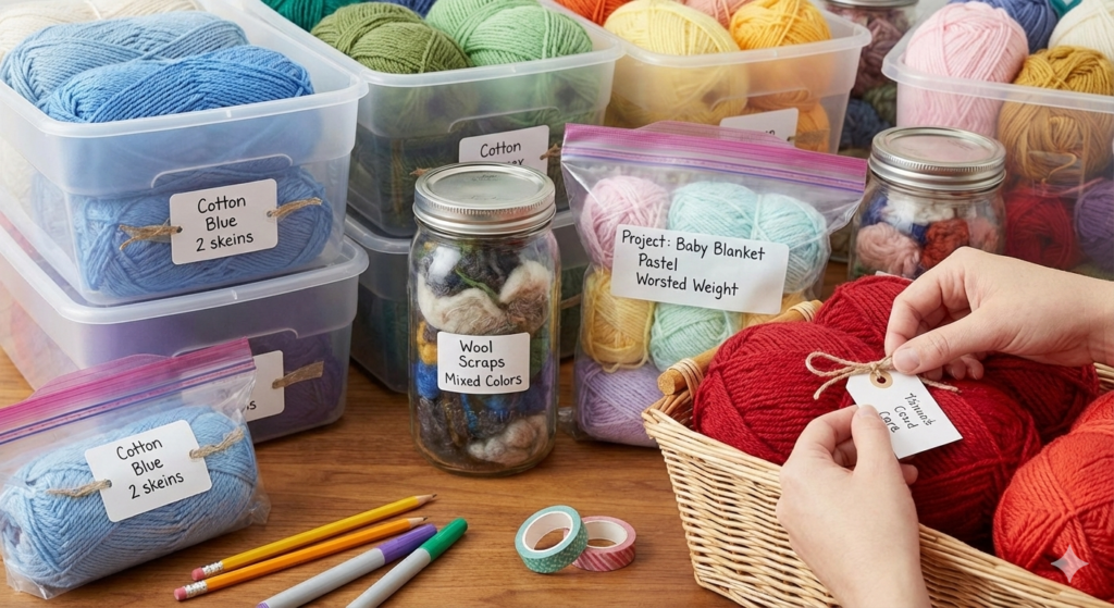 💡 Tip crochetista: cuando compres nuevos hilos, etiquétalos de inmediato. Así tu stash se mantiene ordenado sin esfuerzo extra.