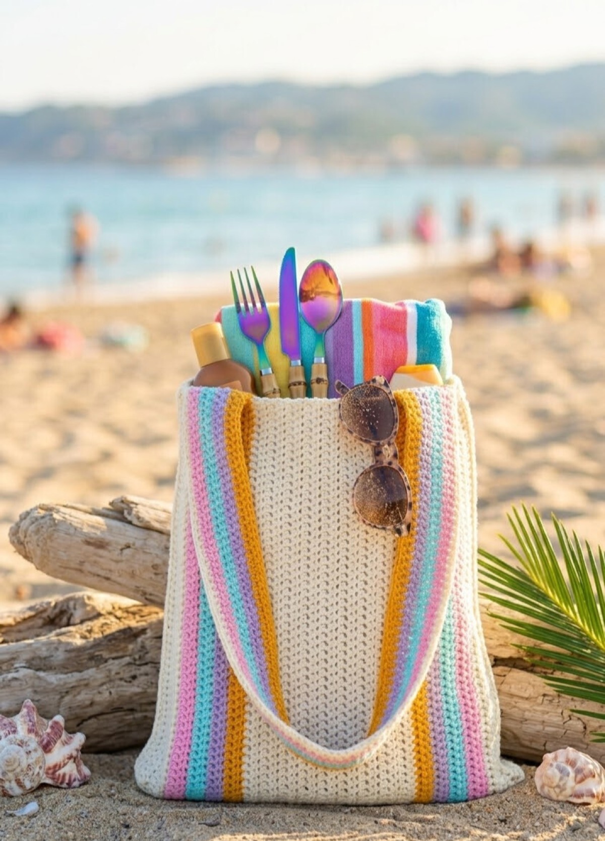 La combinación de colores vivos y llamativos le da un toque de alegría a tu atuendo playero, haciéndote destacar con estilo. Con amplio espacio interior y asas resistentes, este bolso de playa de crochet no solo es moderno, sino también funcional, ofreciendo espacio suficiente para tu protector solar, toalla, gafas de sol y demás artículos esenciales para la playa.