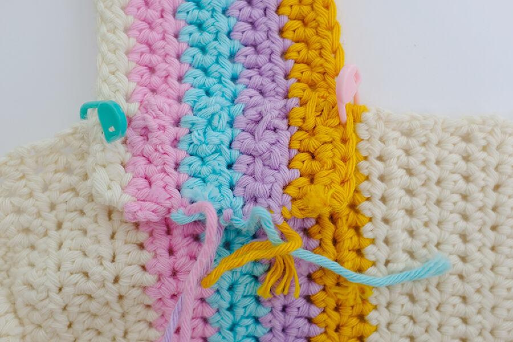 Un proyecto precioso y relajante que combina franjas de colores suaves con una estructura práctica. Ideal para lucir en primavera y verano 🌸☀️. ¡Vamos paso a paso!