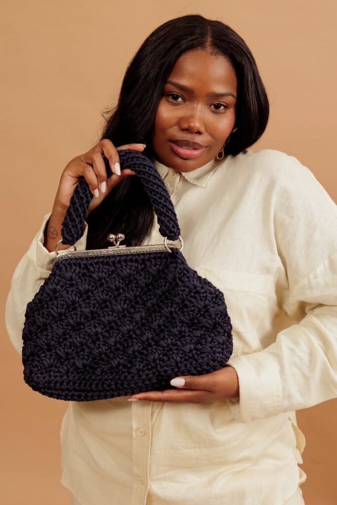 ¡Eleva tu estilo con una pieza que es puro lujo artesanal! ✨ La Bolsa Tifany en Crochet es el accesorio definitivo para quienes buscan combinar la elegancia clásica con la textura moderna del ganchillo. 👜 Con su sofisticado color oscuro y un cierre metálico de estilo vintage, este diseño no solo es funcional, sino que se convierte en el centro de atención de cualquier atuendo, demostrando que el tejido a mano tiene un lugar privilegiado en la moda de alta gama. 🌟