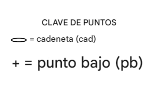 Vuelta 2: 1 cad. 1 pb en el primer pb. 1 pb en el espacio de cad, 1 cad, saltar 1 pb repetir hasta los últimos 2 puntos. 1 pb en el espacio de cad, 1 pb en el último pb. Girar.