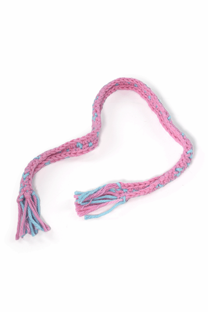 - Cortar el hilo y dejar una hebra para flecos. Comenzar por el otro lado (la base de las cadenas) para que toda la labor quede por el derecho.