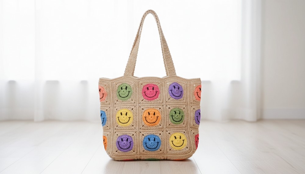 Entre hilos de colores y puntos alegres nació esta Cartera Happy Granny, un proyecto que irradia buena energía desde el primer nudo ✨. Inspirada en la nostalgia de los granny squares clásicos y el toque moderno de los emojis sonrientes, esta pieza es una invitación a dejar volar tu creatividad 🎨. Cada cuadrado tejido cuenta una pequeña historia, un momento de alegría atrapado entre vueltas de hilo 💕.