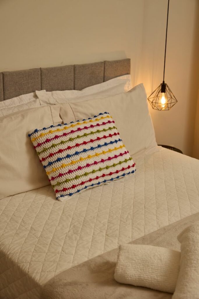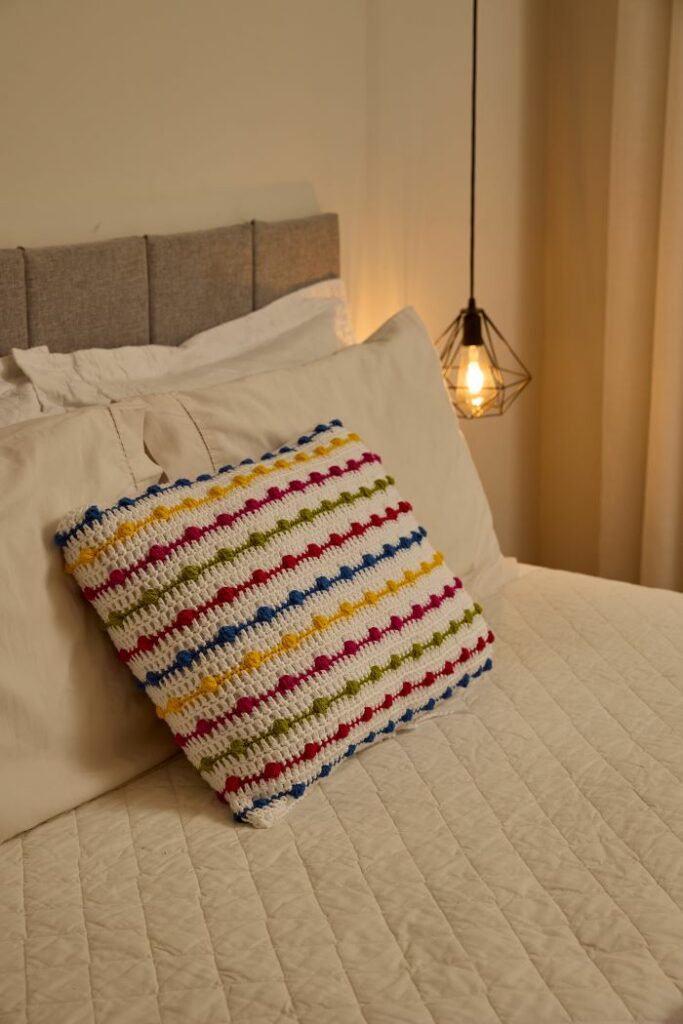 ¡Bienvenida/o al proyecto más alegre y acogedor que tejerás esta temporada! 🧶 Presentamos el Cojín Popcorn Retro a Rayas, una pieza que combina la dulzura de los lunares con un toque vintage irresistible. Los patrones de puntos en relieve como el popcorn se popularizaron en los años 70 para dar un efecto tridimensional a las prendas y decoración, ¡y ahora están de vuelta! Este cojín no solo es visualmente vibrante, sino que es un patrón fácil de seguir que te permitirá dominar el punto popcorn rápidamente. Prepara tus hilos de colores y prepárate para crear una pieza que llenará de vida cualquier sofá o cama. ✨🛋️