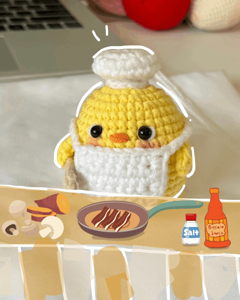 ¡Hola, amantes de lo cute y el ganchillo! 🤩 Es hora de darle un giro divertido a la cocina con Coco, el Chicken Chef Amigurumi, el cocinero más adorable que jamás hayas tejido. Este pequeño y gordito pollito, con su gorro blanco impecable, es el proyecto perfecto para quienes se inician en el mágico mundo del amigurumi. Se cuenta que los chefs de las aldeas tejían pequeños amuletos de sus ingredientes favoritos para asegurar la suerte en sus platillos, y Coco es tu amuleto para una cocina llena de alegría. ¡Es un patrón súper fácil de seguir, ideal para que tu primer amigurumi sea un éxito total! 🥕🍄