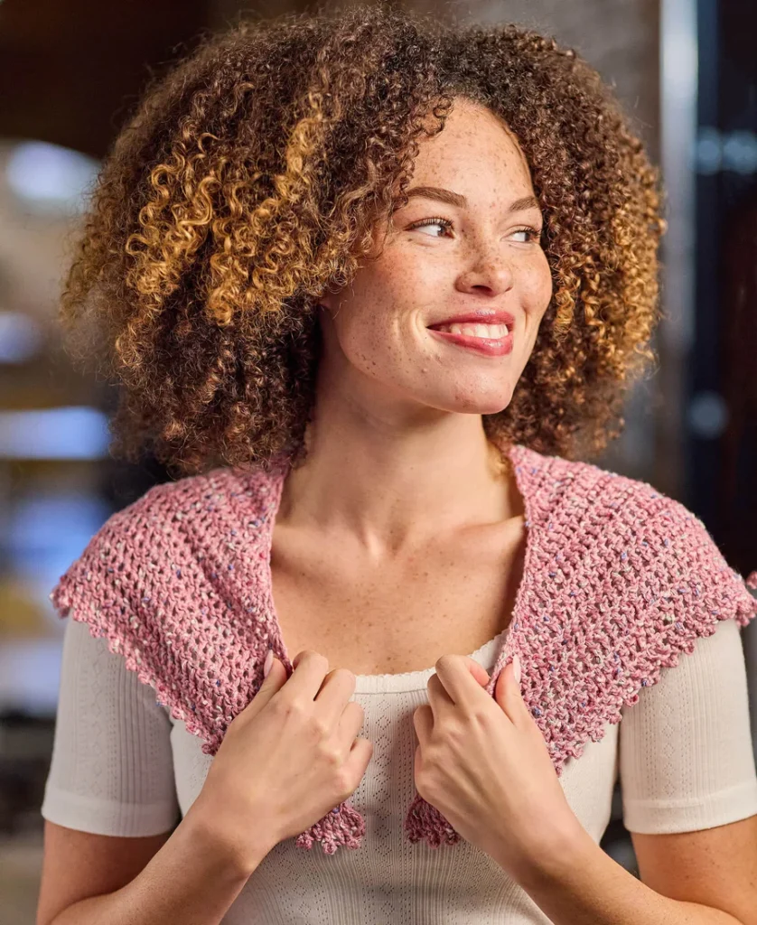 Esta pañoleta es la definición de «menos es más» 🏙️. Su diseño calado y su tono rosa empolvado con motas de colores la convierten en el complemento ideal para darle un toque romántico a un look urbano y sencillo 👗. La satisfacción de tejer esta pieza es inmediata, ya que su patrón repetitivo te permite relajarte mientras avanzas rápidamente. Es ese accesorio que te pones cuando refresca un poco y que, además de abrigarte con ligereza, te hace lucir impecable. ¡Es una victoria asegurada para tu primer proyecto de moda! 🧶💖